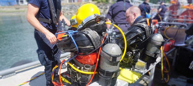 Sin embargo, cuando se necesitan buzos, se deben abordar las consideraciones de seguridad para garantizar que no se produzcan pérdidas adicionales de vidas durante la búsqueda. Además de bucear en aguas desconocidas y peligrosas, estos buzos tienen tanques de oxígeno y tiempos de búsqueda limitados. Dadas estas circunstancias, a menudo los ROV se pueden usar antes de enviar a un buzo o en tándem para monitorear la seguridad del buzo. Los ROV mejoran la seguridad de los buzos, ya que pueden usarse para evaluar las condiciones bajo el agua e identificar cualquier peligro para un buzo, antes de sumergirse bajo el agua.